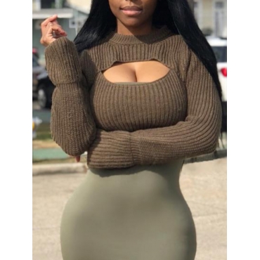 Lovely Street Turtleneck Hollow-out Army Green Sweater