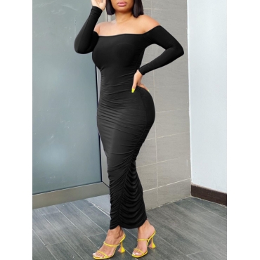 Lovely Stylish Dew Shoulder Fold Design Black Ankle Length Dress