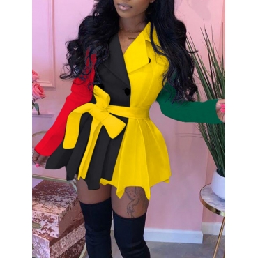 Lovely Stylish Turndown Collar Patchwork Fold Design Yellow Mini Dress