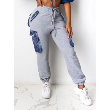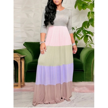Lovely Casual O Neck Patchwork Grey Maxi Dress