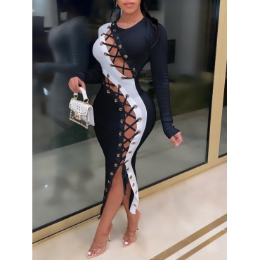 Lovely Sexy Patchwork Bandage Design Black Ankle Length Dress