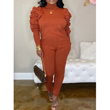 Lovely Stylish Turtleneck Fold Design Jacinth Two Piece Pants Set