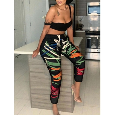 Lovely Sportswear Print Skinny Black Pants(Batch Print)