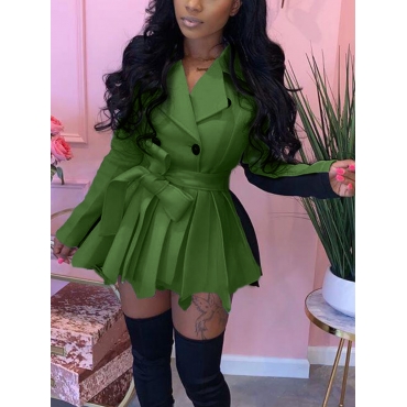 Lovely Trendy Turndown Collar Patchwork Fold Design Green Mini Dress