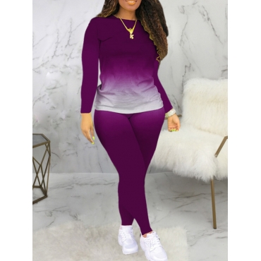 Lovely Casual O Neck Gradient Print Purple Two Piece Pants Set