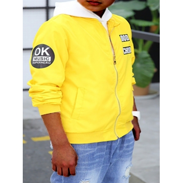 Lovely Casual Letter Zipper Design Yellow Boy Coat