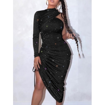 Lovely Trendy One Shoulder Asymmetrical Black Knee Length Dress