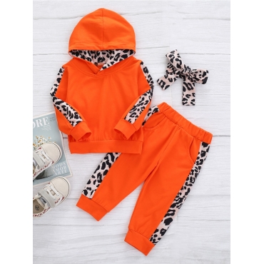 Lovely Sportswear Hooded Collar Leopard Print Patchwork Orange Girl Two-piece Pants Set