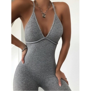 Lovely Stylish Deep V Neck Grey One-piece Jumpsuit
