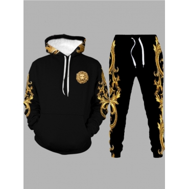 Lovely Stylish Hooded Collar Print Black Men Two-piece Pants Set