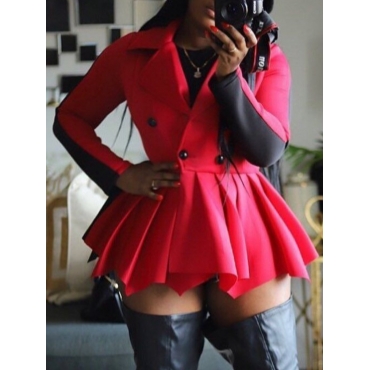 Lovely Stylish Turndown Collar Patchwork Fold Design Red Mini Plus Size Dress(Without Belt)