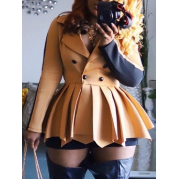 Lovely Stylish Turndown Collar Patchwork Fold Design Yellow Mini Plus Size Dress(Without Belt)