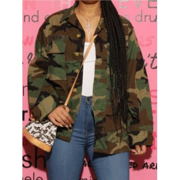 Lovely Trendy Turndown Collar Camo Print Army Green Denim Jacket