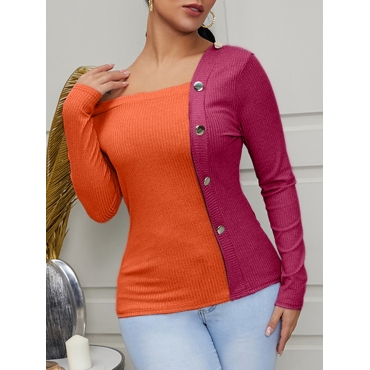 Lovely Street V Neck Buttons Design Rose Red Sweater