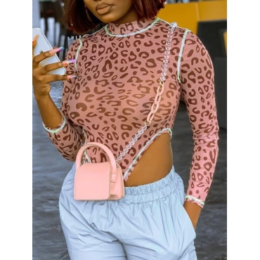 Lovely Sexy Half A Turtleneck Asymmetrical Print Khaki Bodysuit