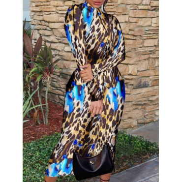 Lovely Stylish Half A Turtleneck Leopard Print Ankle Length Dress(Batch Print)
