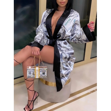 Lovely Casual Turndown Collar Print Multicolor Mini Plus Size Dress