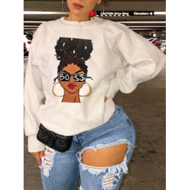 Lovely Casual O Neck Print White Plus Size Hoodie