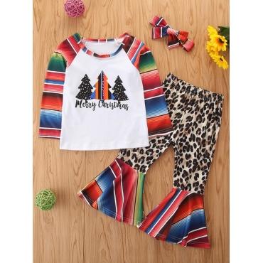 Lovely Casual O Neck Print Patchwork White Girl Two-piece Pants Set