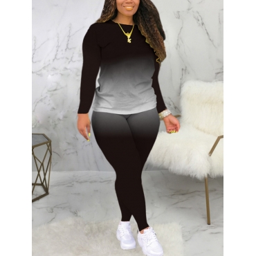 Lovely Casual O Neck Gradient Print Black Two Piece Pants Set
