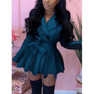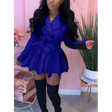 Lovely Trendy Turndown Collar Patchwork Fold Design Blue Mini Dress