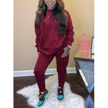 Lovely Casual O Neck Basic Wine Red Two Piece Pants Set