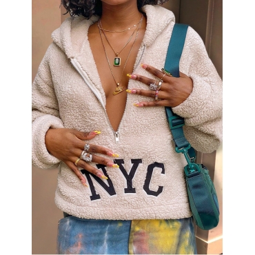Lovely Trendy Hooded Collar Letter Print Zipper Design Apricot Hoodie