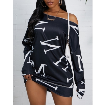 Lovely Casual Print Black Mini Dress