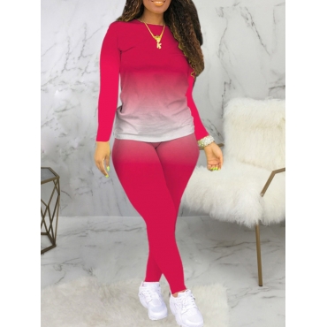Lovely Casual O Neck Gradient Print Rose Red Two Piece Pants Set