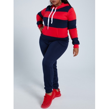 Lovely Sportswear Hooded Collar Striped Dark Blue Plus Size Two-piece Pants Set
