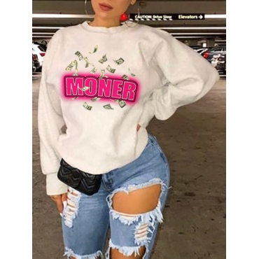 Lovely Leisure O Neck Letter Print White Hoodie