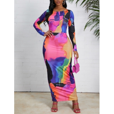Lovely Stylish O Neck Print Multicolor Ankle Length Dress