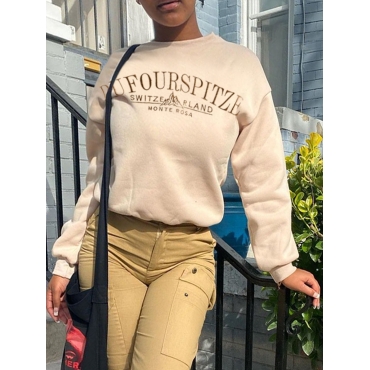 Lovely Casual O Neck Letter Print Khaki Hoodie