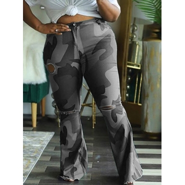 Lovely Casual Camo Print Broken Holes Grey Plus Size Pants