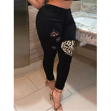 Lovely Casual Patchwork Broken Holes Black Plus Size Jeans