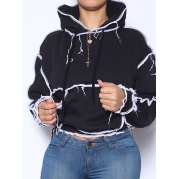 Lovely Casual Hooded Collar Patchwork Black Hoodie