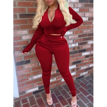 Lovely Trendy Zipper Design Skinny Red Two Piece Pants Set