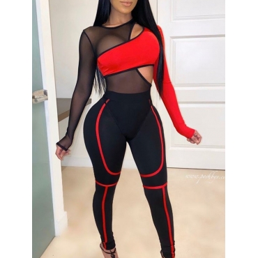 Lovely Sportswear Hollow-out Patchwork Red Two Piece Pants Set
