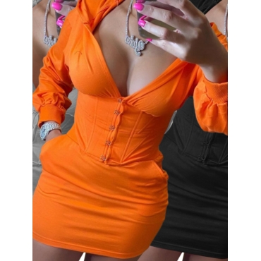 Lovely Sexy Deep V Neck Patchwork Orange Mini Dress