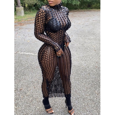 Lovely Sexy Turtleneck Hollow-out Black Ankle Length Dress