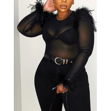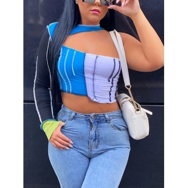 Lovely Street O Neck Hollow-out Patchwork Blue T-shirt