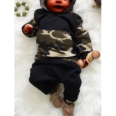 Lovely Street O Neck Camo Print Patchwork Black Boy Two-piece Pants Set