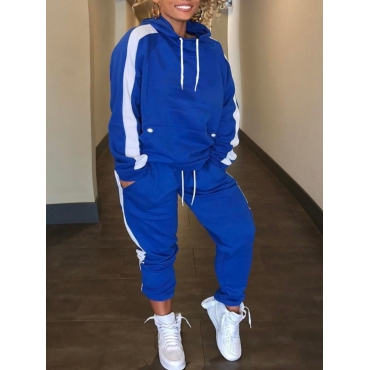 Lovely Sportswear Hooded Collar Patchwork Blue Two Piece Pants Set