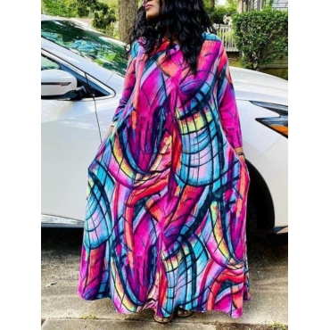 Lovely Stylish O Neck Print Loose Rose Maxi Dress