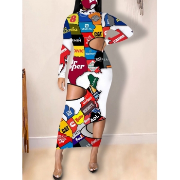 Lovely Stylish O Neck Letter Print Hollow-out Multicolor Ankle Length Dress