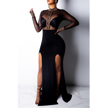 Lovely Sexy See-through Patchwork Black Trailing Dress(Without Lining)