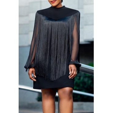 Lovely Sportswear Zipper Design Patchwork Black Mini Plus Size Dress