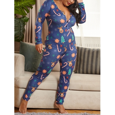 Lovely Leisure Cartoon Print Skinny Dark Blue Plus Size One-piece Jumpsuit