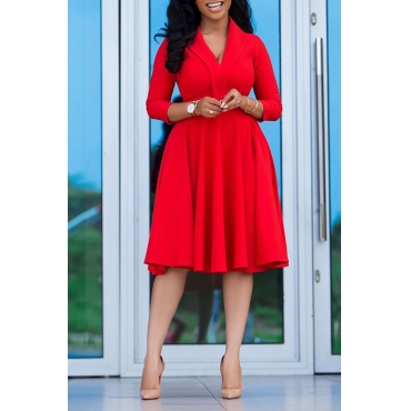 Lovely Leisure V Neck Red Knee Length Dress