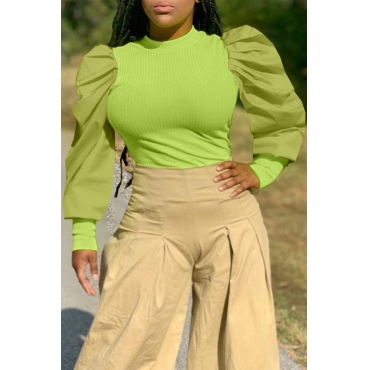 Lovely Sweet O Neck Ruffle Design Green Blouse